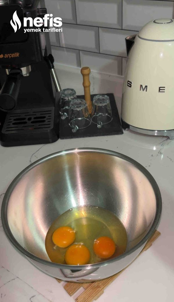 1. 3 yumurtayı bir kaba kırıyoruz.
