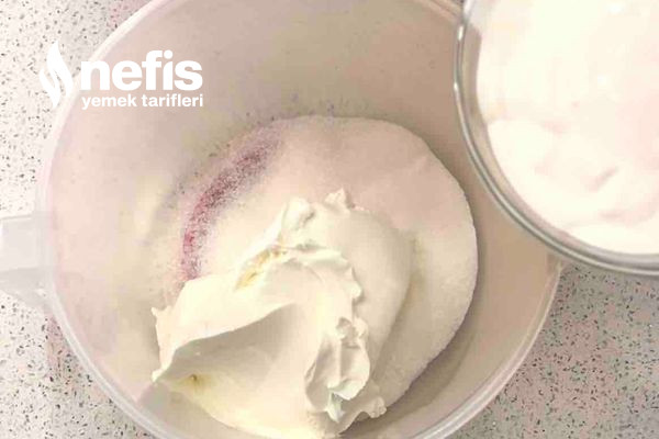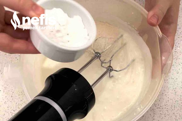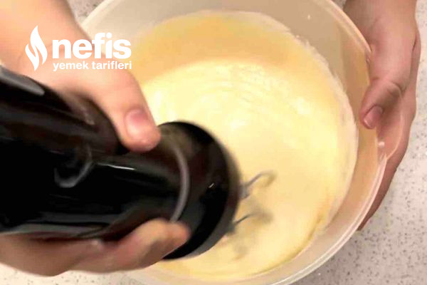 - Üstüne şekeri ve sıvı kremayı ekleyip homojen hale gelene kadar mikserle çırpın.