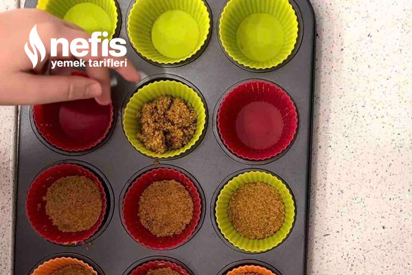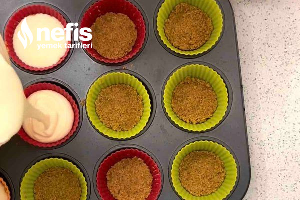 - Öncelikle muffin kalıplarına plastik yahut kağıt kek kalıplarını yerleştirin. Bu tanım ile 23-24 adet cheesecake çıkıyor.