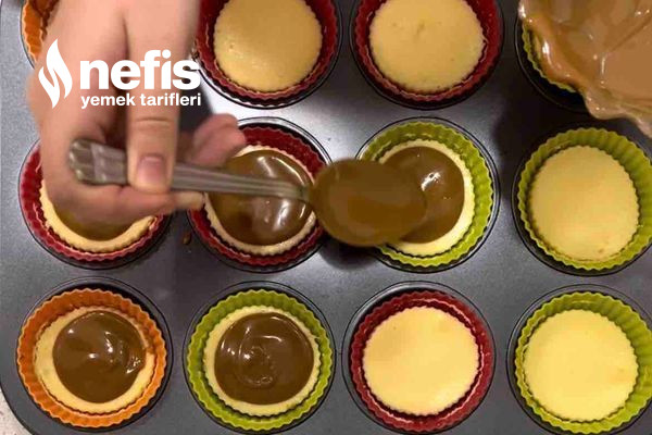 - Karışımı kek kalıplarına paylaştırıp çay bardağının tabanı yardımıyla düzleştirin.