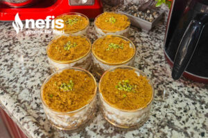 - Daha sonra bir krema bir bisküvi koyarak tatlımızı dilediğiniz halde süsleyebilirsiniz,ben antep fıstığı kullanmayı tercih ediyorum yapanlara şimdiden afiyet olsun 💐.