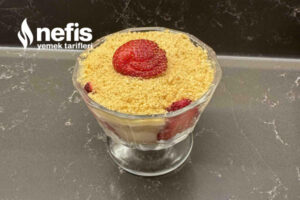 - Sonra kasenin yanlarını doğranmış çilekler dizip süsleyelim.