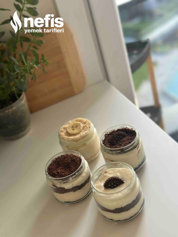 9. Üzerine tekrar muhallebi ve bisküvi ekleyerek üzerini süsleyip 3- 4 saat buzdolabında bekletelim.