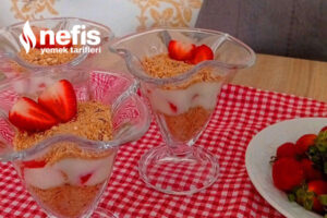 - Magnolia kuplarımızın birinci evvel biraz bisküvili fındıklı karışımı yerleştirelim ve kaşığın art kısmıyla düz bir taban elde edelim kupların kenarına 2 ye böldüğümüz çilek yahut muz dizelim.