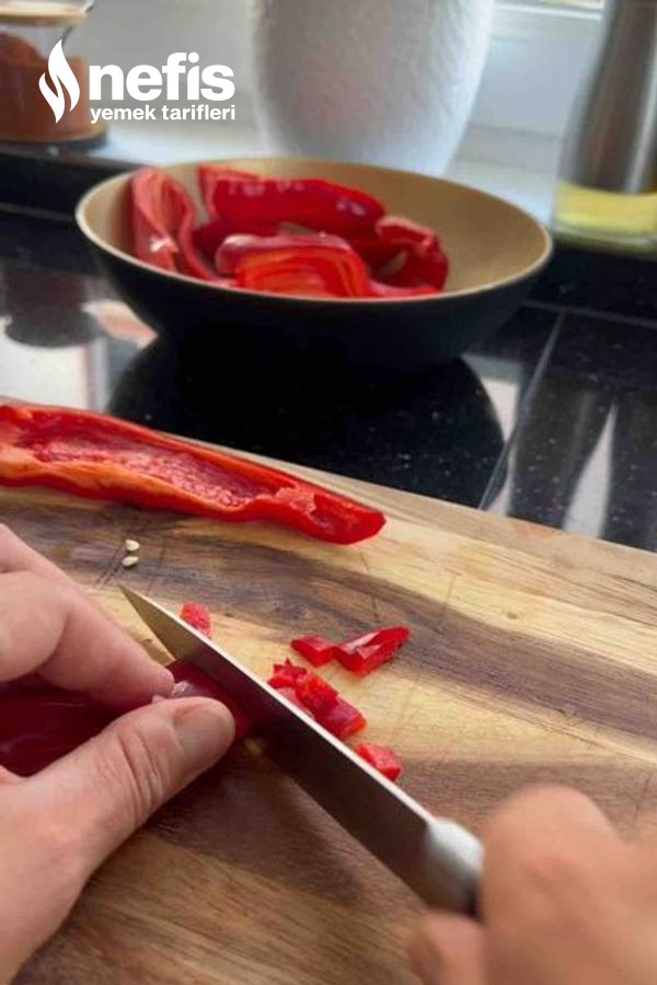 - 3 adet kırmızı biber (şerit halinde doğranmış)