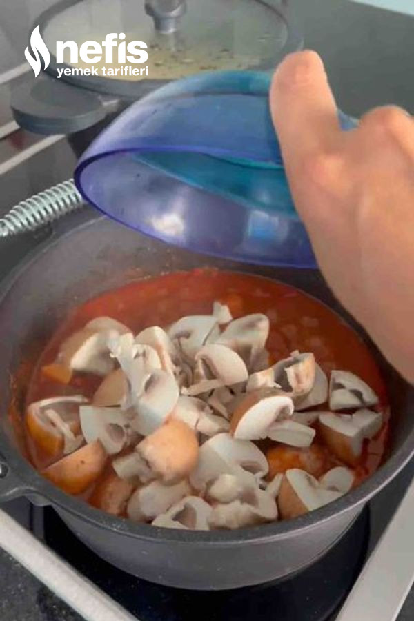 - 30 dakikanın sonunda mantarları ekleyin ve orta ateşte 20 dakika daha pişirin.