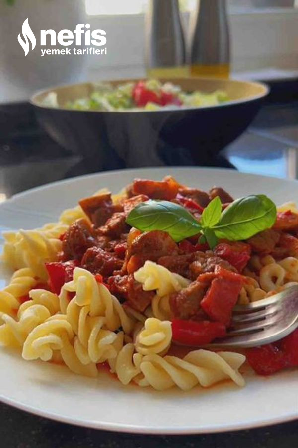 - Haşlanmış makarna ile servis edin – tam bir lezzet şöleni.