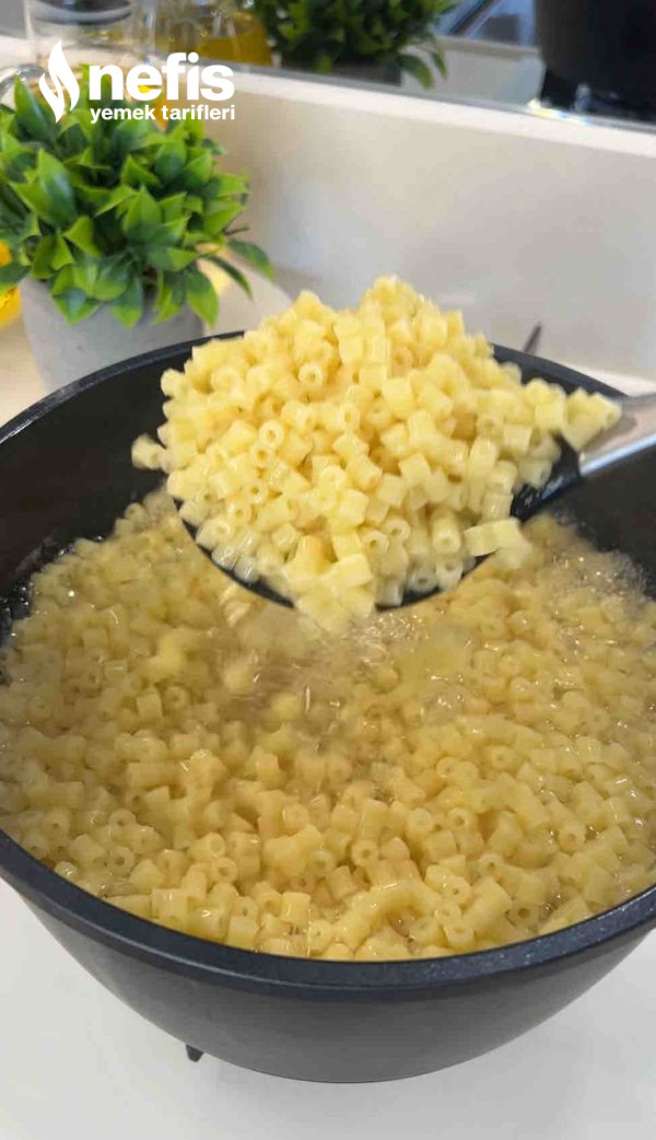 - Ardından makarnayla buluşturup güzelce karıştırıp servis edelim. Afiyet olsun.