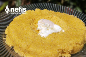 - Mısır unu eklenip suyunu çekene dek pişirilir.