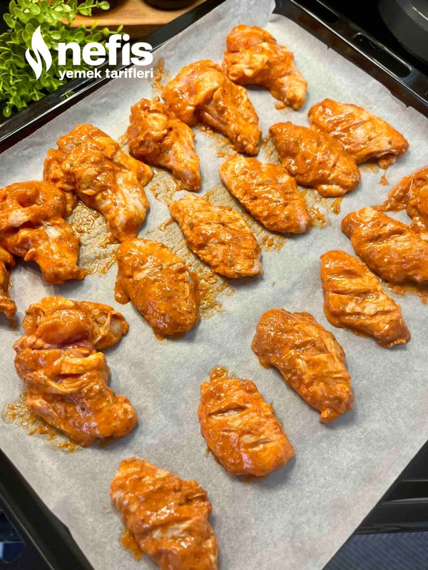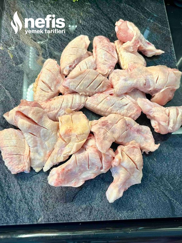 - Kanatların üzerine bıçak ile çizikler atalım. Hem imaj olarak hem lezzetin içe geçmesi için daha hoş oluyor💯.