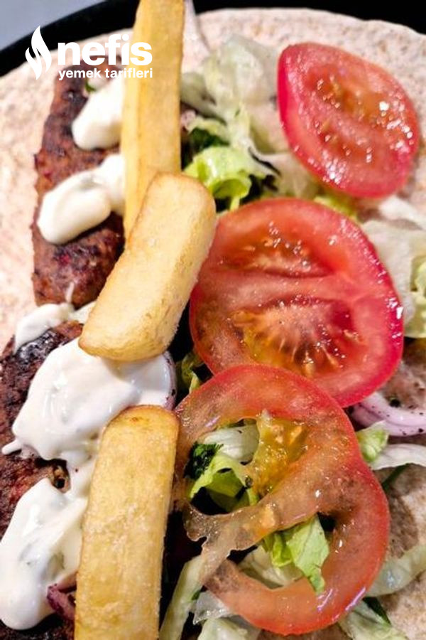 - Ocakta çevirerek pişiriyoruz. Ben yanına ezme salata, soğan salatası ve patates kızartması yaptım ve dürüm ortası yaptım.