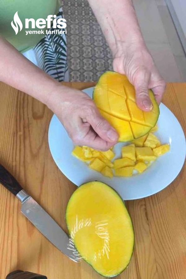1. Mangoların kabuklarını soyup küp küp doğrayın.