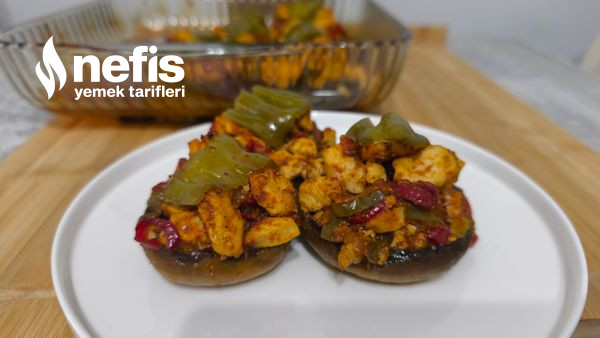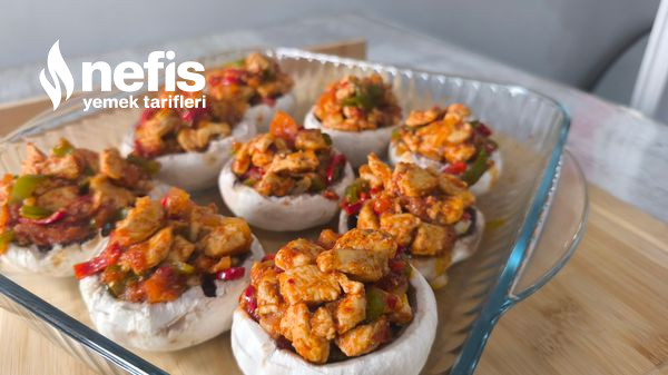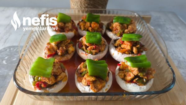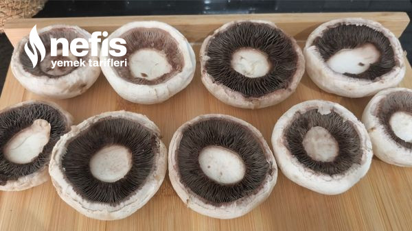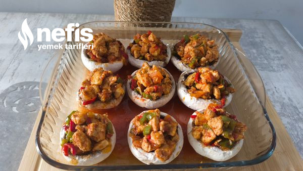 - Mantarların kabuklarını soyalım ve içerisine yapmış olduğumuz tavuk soteyi bir yâda 2 kaşık olacak biçimde mantar çanağına koyalım.