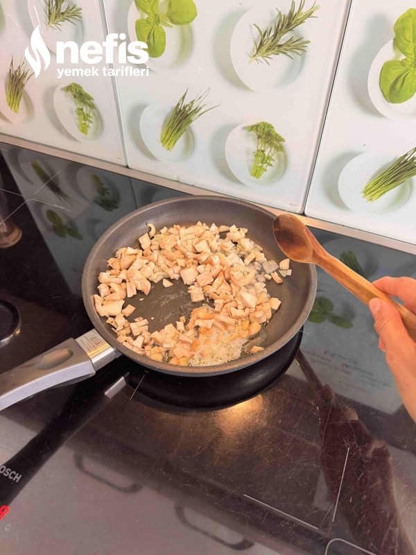 5. Soğanı, sarımsağı ve mantarın saplarını kavurun. Soğumaya bırakın.