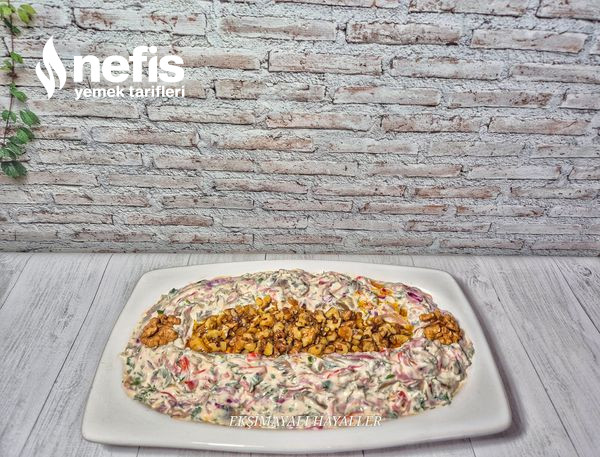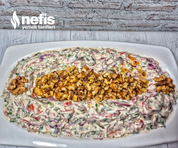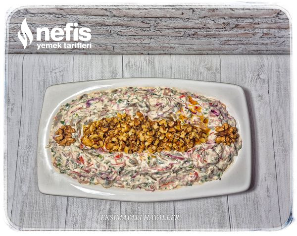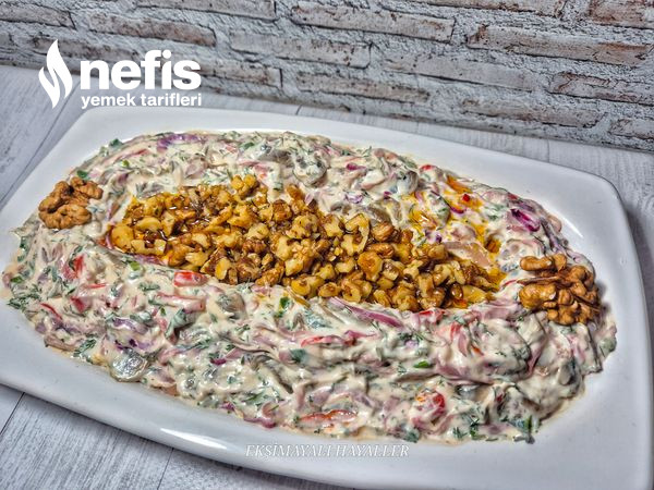 - Servis tabağına alınır. Üzeri istenildiği üzere süslenebilir. Ben cevizleri kırıp zeytinyağında biraz toz biber ile çevirdim ve ortasına döktüm. Afiyetle ve sevgiyle kalın.