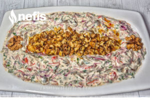 - Servis tabağına alınır. Üzeri istenildiği üzere süslenebilir. Ben cevizleri kırıp zeytinyağında biraz toz biber ile çevirdim ve ortasına döktüm. Afiyetle ve sevgiyle kalın.