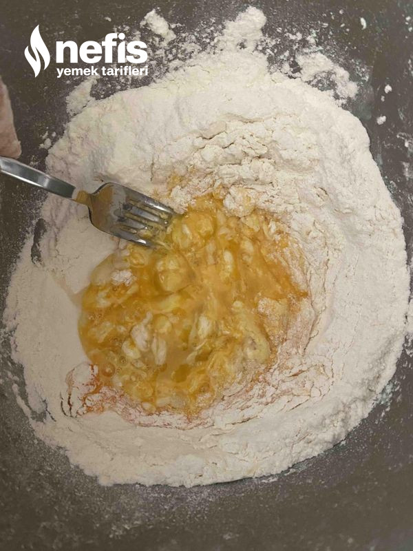 - Öncelikle hamurumuzu yapmaktan başlayalım. Bir kabının içerisine unumuzu ve yumurtamızı alalım daha sonra tuzumuzu ek edip yoğurma başlayalım gerektikçe ilave su yahut ekleyebilirsiniz. Hamur sert ancak yoğrulabilir bir kıvamda olması gerekiyor.