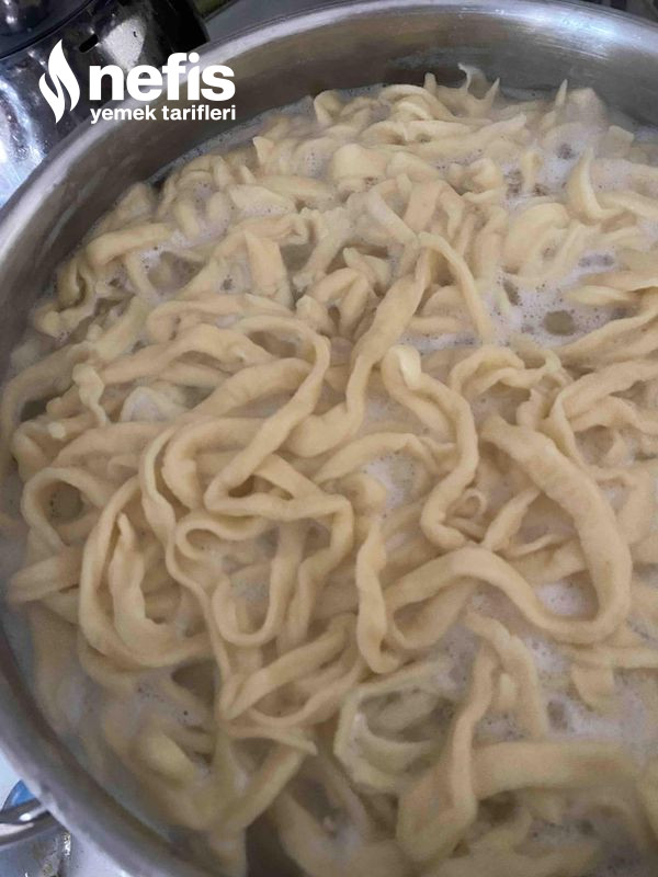- Kestiğimiz parçalarıda unlayıp 10-15 dakika kadar dinlendirdikten sonra kaynayan suyumuza koyalım ve yaklaşık 4-5 dakika kadar tutalım. Taze olduğu için süratli pişer daha fazla tutmak hamurlaştırır.