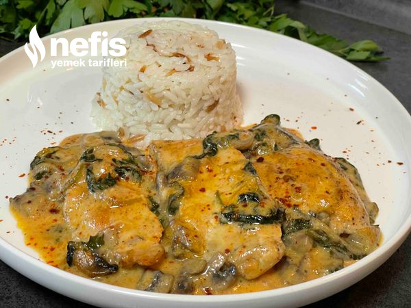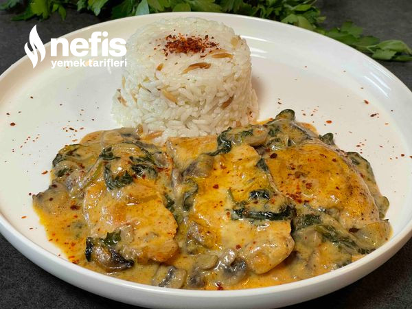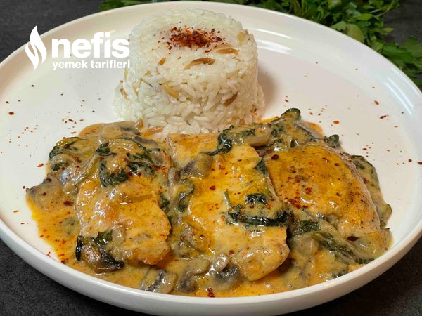 Mantarlı Ispanaklı Krema Soslu Tavuk Tanımı Fotoğraflı Yapılışı