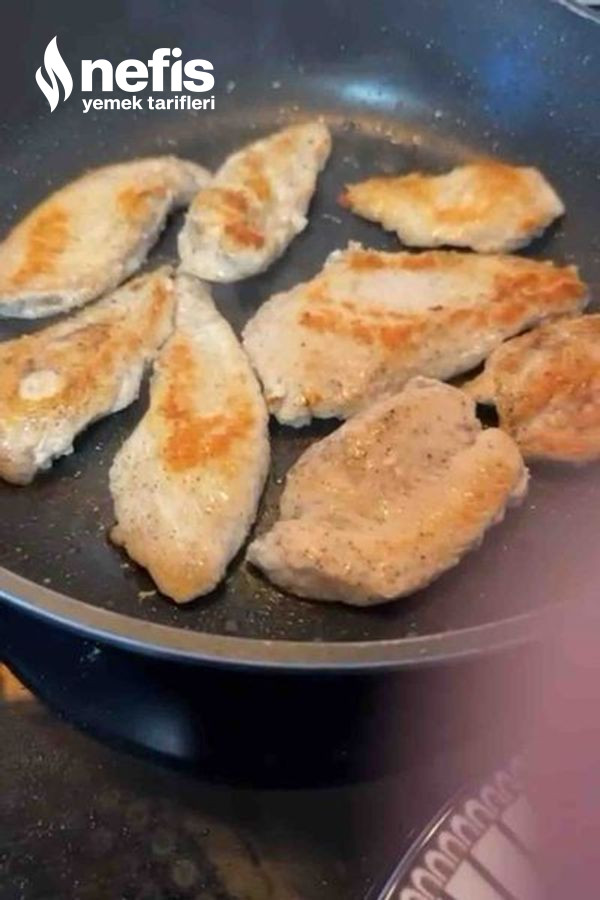 3. Uygun bir tavaya biraz sıvı yağ ekleyip tavukları önlü gerili iki üç dakika kızartın öteki bir tabağın içine alın.