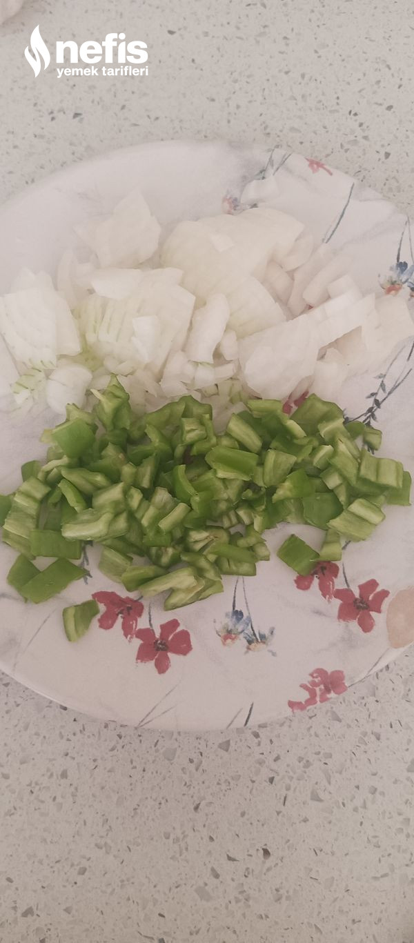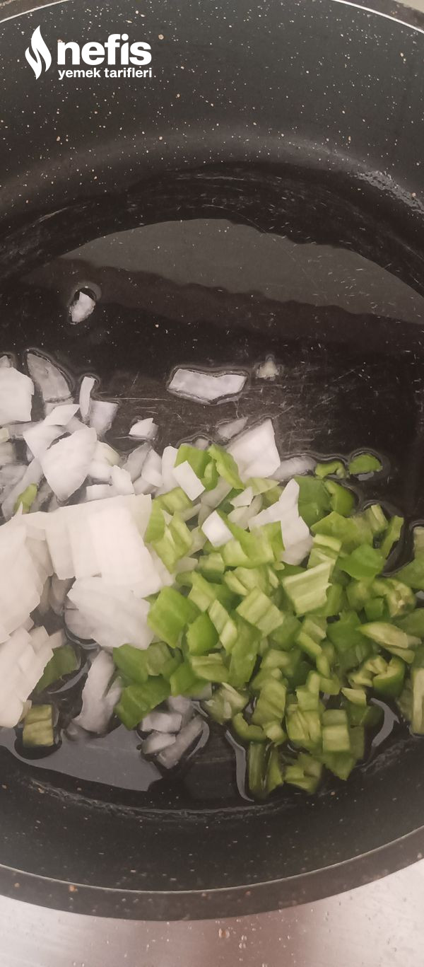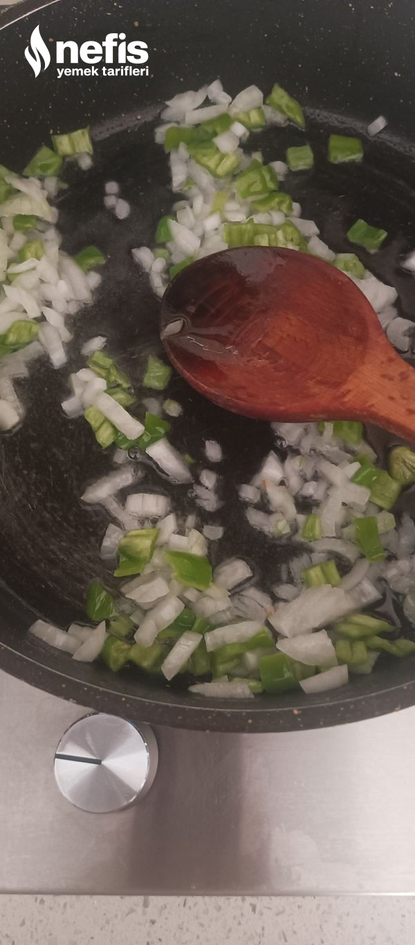 - Öncellikle bütün sebzelerimizi doğruyoruz daha sonra soğan ve biberimizi pembeleşinceye kadar kavuruyoruz.