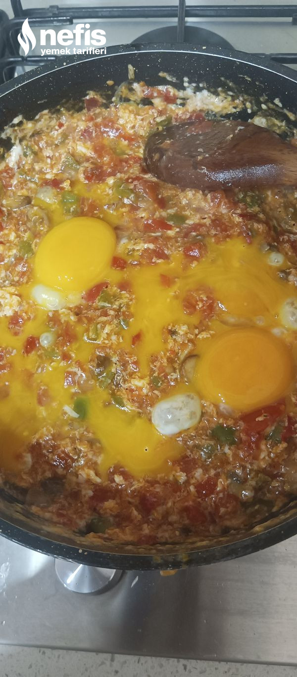 - Son olarak yumurtalarımızı menemenin üzerine kırıyoruz ve yumurtalar hafif pişince altını kapatıyoruz 4-5 dk dinlendirdikten sonra afiyetle yiyebilirsiniz.