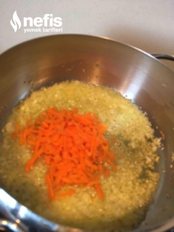 2. Soğanlar hafif pembeleşince rendelenmiş havuçlar eklenir.