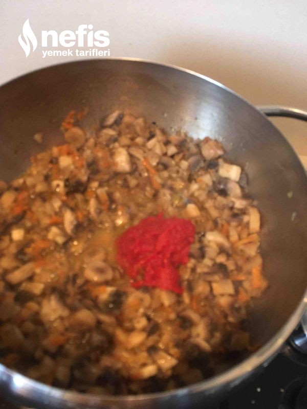 4. Domates salçası eklenerek kavrulur.