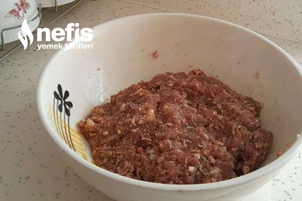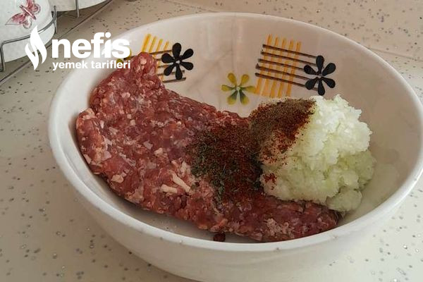 - Ardından mantının kıyması için bir kapta tüm gereçleri karıştıralım.