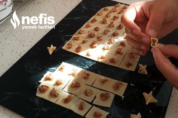 - Ayırdığımız bezeleri açalım küçük kareler halinde keselim kıymaları koyalım ve bohça halinde kapatalım.