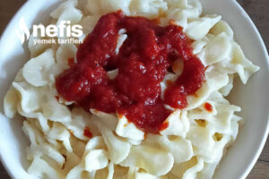 - Makarnamızı koyalım tabağa üzerine salça sosundan koyalım ve afiyet olsun 🥰.