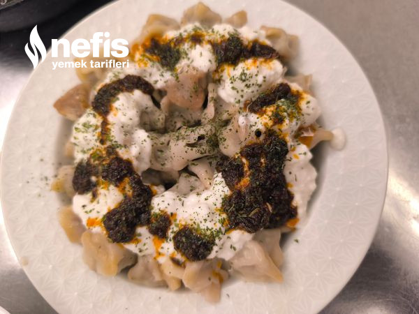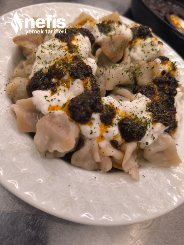 4. 15 dakika kadar orta ateşte pişen mantıyı tabağa alarak servis edebilirsiniz. Ben yoğurtlu sarımsak ve sosla servis ettim isteyen dilediği üzere servis edebilir. Afiyet olsun.