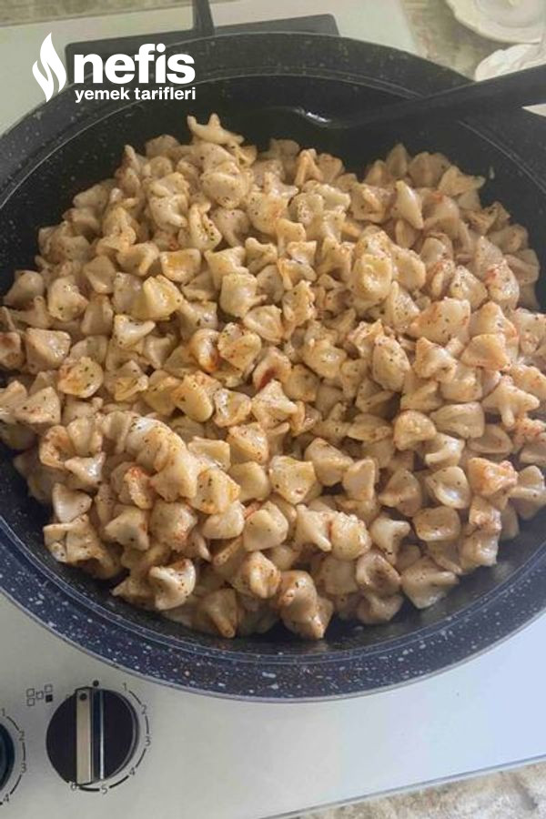 - Mantıyı tuzlu suda haşlayıp süzüyoruz, yağları tavaya alıp eriyince mantıyı katıyoruz .