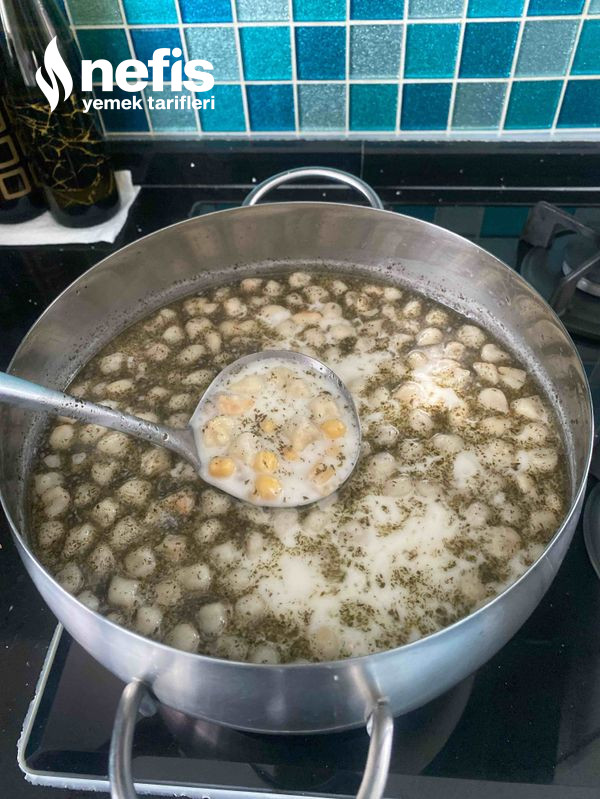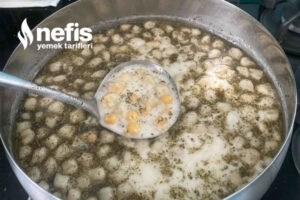 - Kaynayan çorbaya mantı ve haşlanmış nohut eklenir.