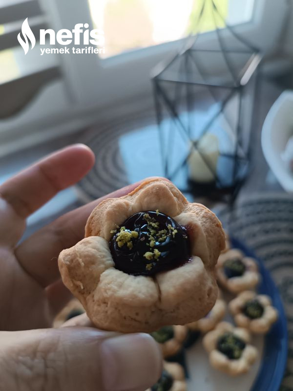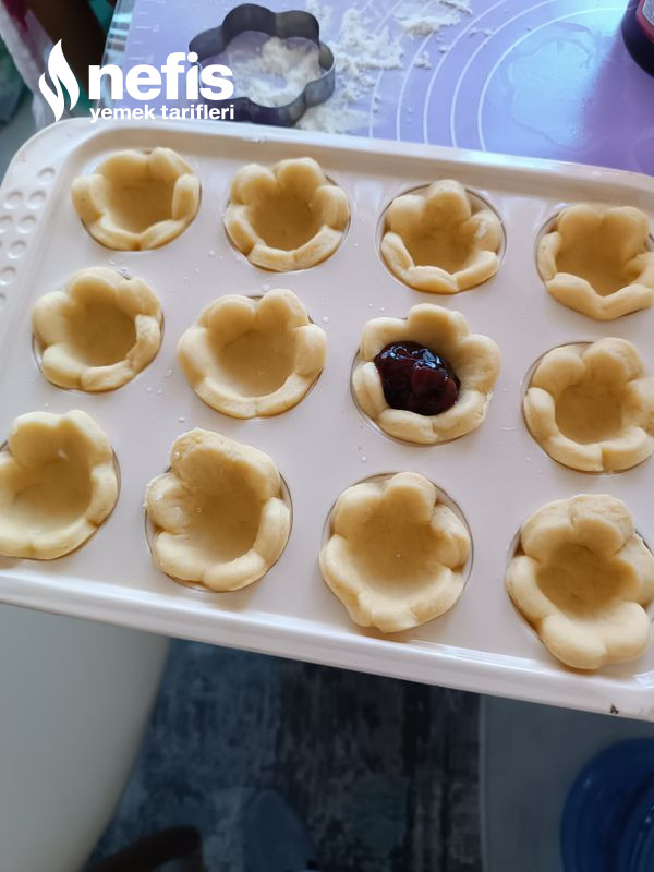 - Ortasına bastırılıp bir tatlı kaşığı marmalat koyulur.