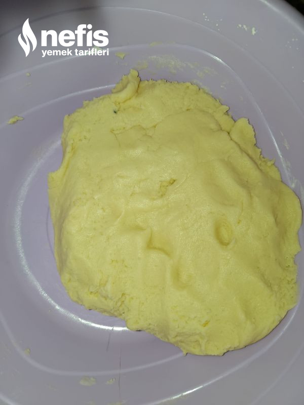 2. Birbiriyle bütünleşen karışımımıza un ve nişasta yeniden azar azar ekleyip cıvık bir formda sıkma torbasına boşaltalım.