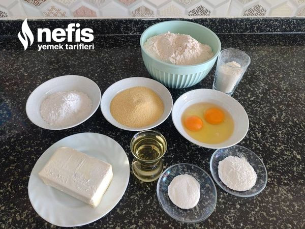 - Hamuru için oda ısısında yumuşamış tereyağı yahut margarin, sıvı yağ, yumurta, pudra şekeri, irmik, kabartma tozu ve vanilya karıştırılır.