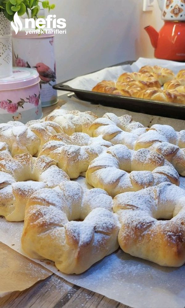 7. Fırından çıkan çöreklerin üzerlerine bir bez örterek dinlendirelim (pamuk üzere yumuşak olması için )daha sonra pudraşekeri eleyerek servis edelim şahane bir lezzet afiyet olsun 🍫🥐❤️.