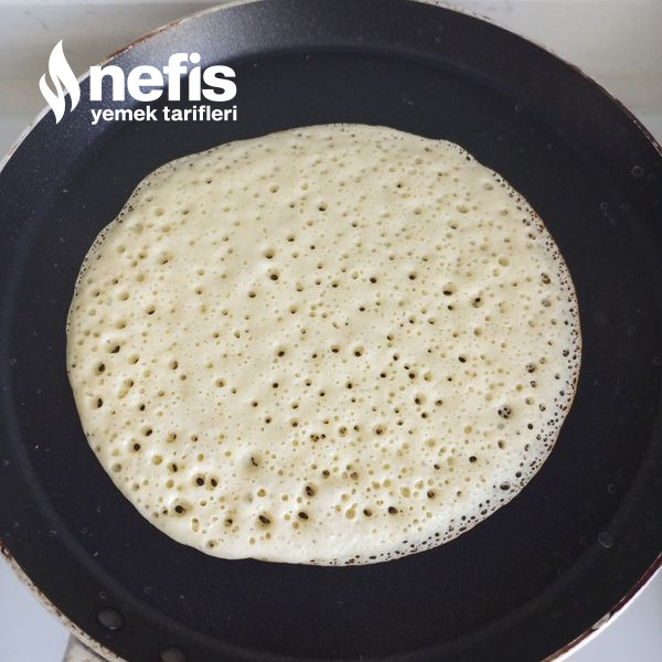6. Hamur göz göz olduktan sonra alt tarafı pişmiş oluyor çevirelim öbür tarafında pişirelim servis tabağına alalım.