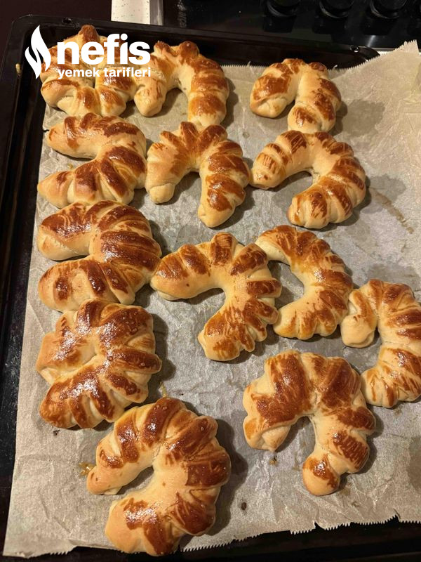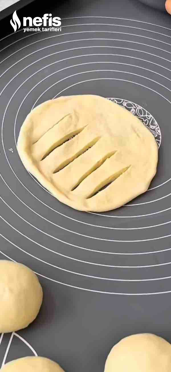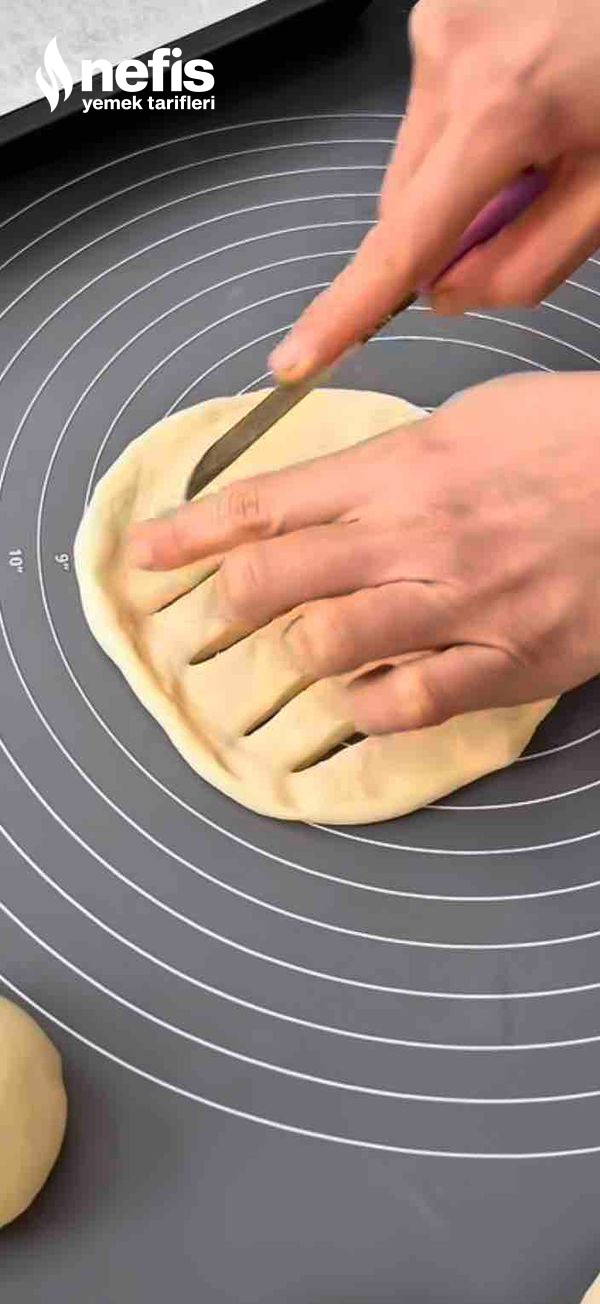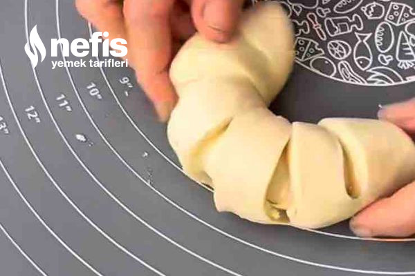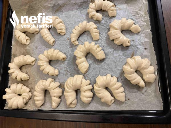- Hamurları yuvarlak formda ellerimizle açıp bıçak yahut pizza bıçağı ile sıra sıra kesik atıyoruz ,karşı kenarından kıvırıp ay hali veriyoruz.