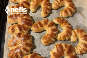 - Hamurları yuvarlak formda ellerimizle açıp bıçak yahut pizza bıçağı ile sıra sıra kesik atıyoruz ,karşı kenarından kıvırıp ay hali veriyoruz.