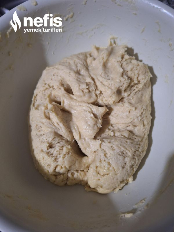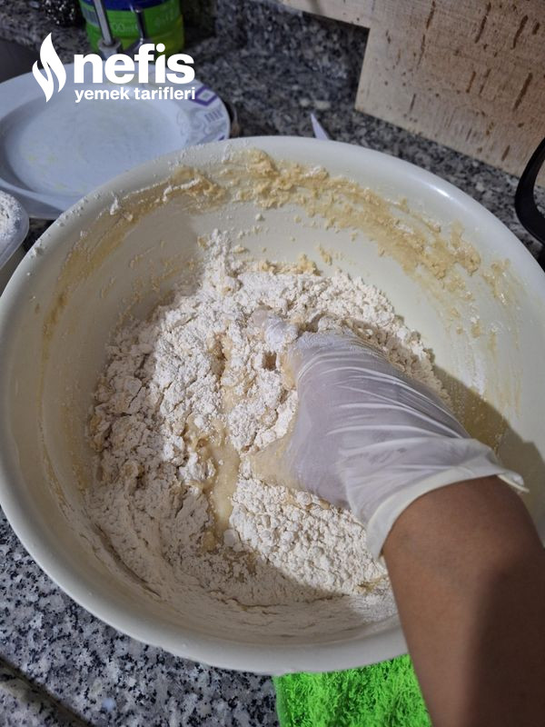 4. Tuz ve unu ekleyip jenerasyon göğsü kıvamında yoğuralım i. Ben tepsidede mayalandırdım.