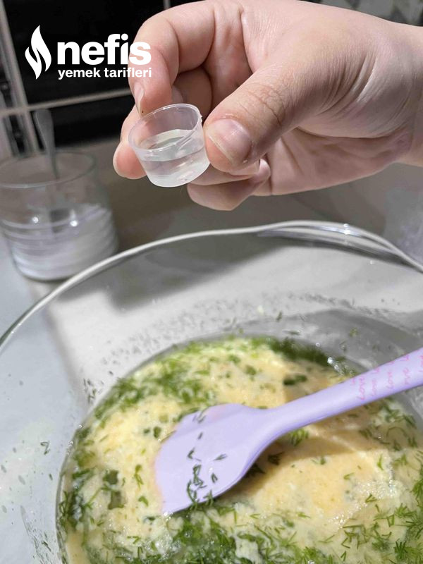 - İyice karıştırdıktan sonra son olarak unumuzu, 2 paket kabartma tozunu ve 1,5 tatlı kaşığı tuzu ek edip elimize yapışmayacak kıvama gelene kadar yoğuruyoruz. (ne çok katı ne çok yumuşak olmalı).