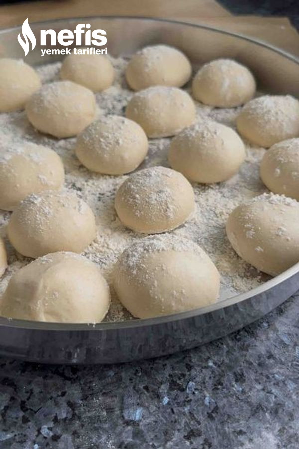 7. Hamurdan ceviz büyüklüğünde kesimler alıp bezeler hazırlayıp unladığınız tezgaha aralıklı olarak dizip üzerini pak bir bez ile kapatalım.
