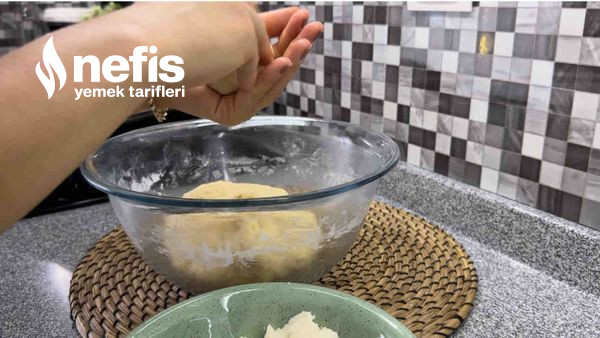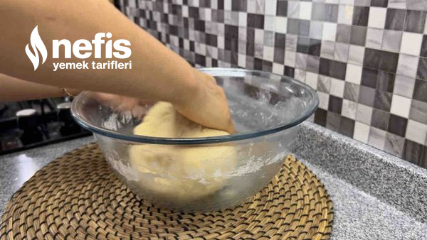 2. Ardından unu denetimli ekleyerek yumuşak lakin ele yapışmayan kıvamlı hamur elde edelim.