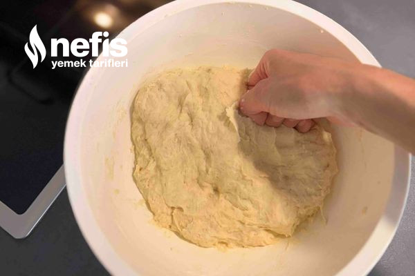 2. Kalan unuda ekleyip ellerinizi hafif yağlayıp yoğurun ( not; hamur hafif elinize yapışacak, yumuşak olması kıymetli.Elinizi yıkayıp hafif tekrar yağlayın ve yoğurun) üzeri kapalı 20 dakika dinlendirin.