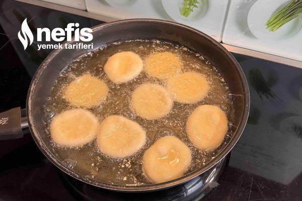 7. Pişileri kızgın yağa ekleyin ve çok değerli yağdan kaşıkla pişilerin üzerine serpin.