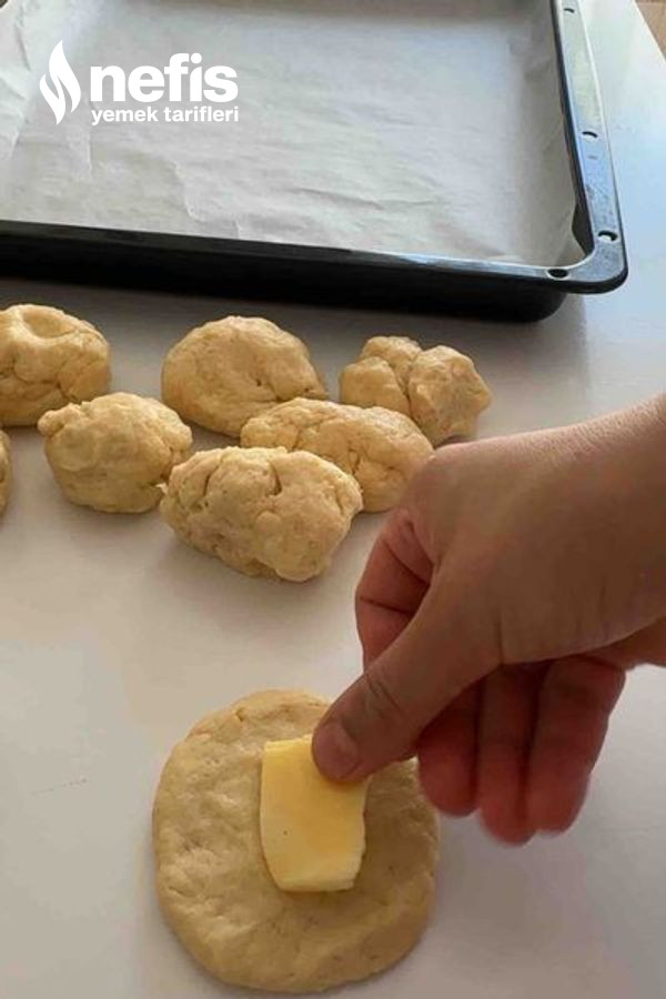 - Mandalina büyüklüğünde modüller koparalım elimizle bastıralım ,üzerine kaşar peyniri koyup katlayalım .