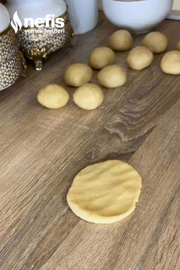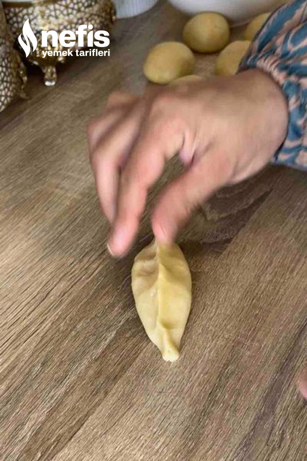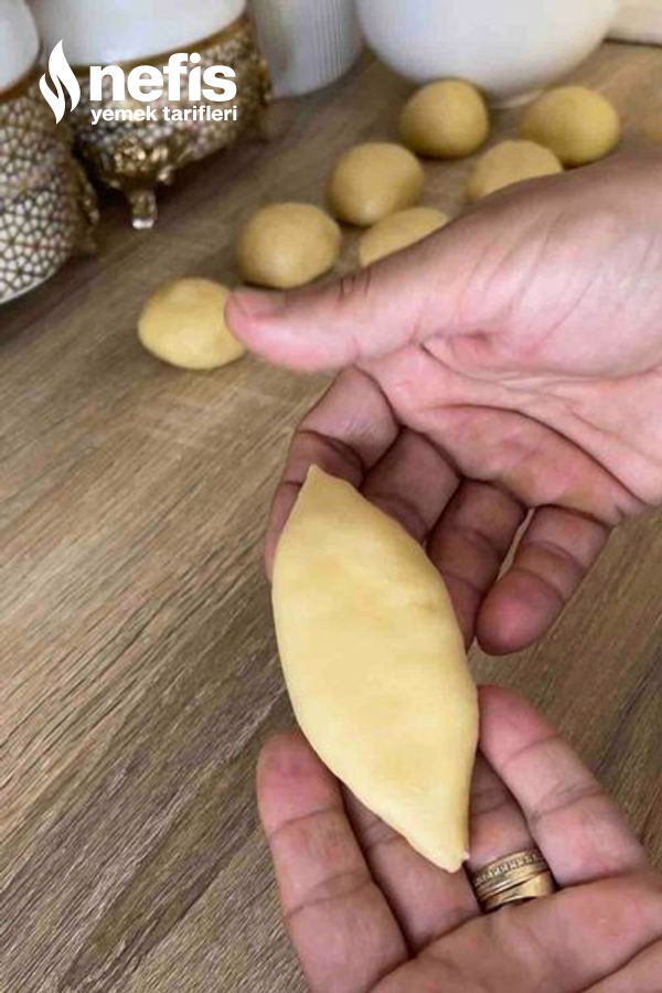 - Hamurdan ceviz büyüklüğünde bezeler koparın ve avucunuzun ortasında yuvarlayın.