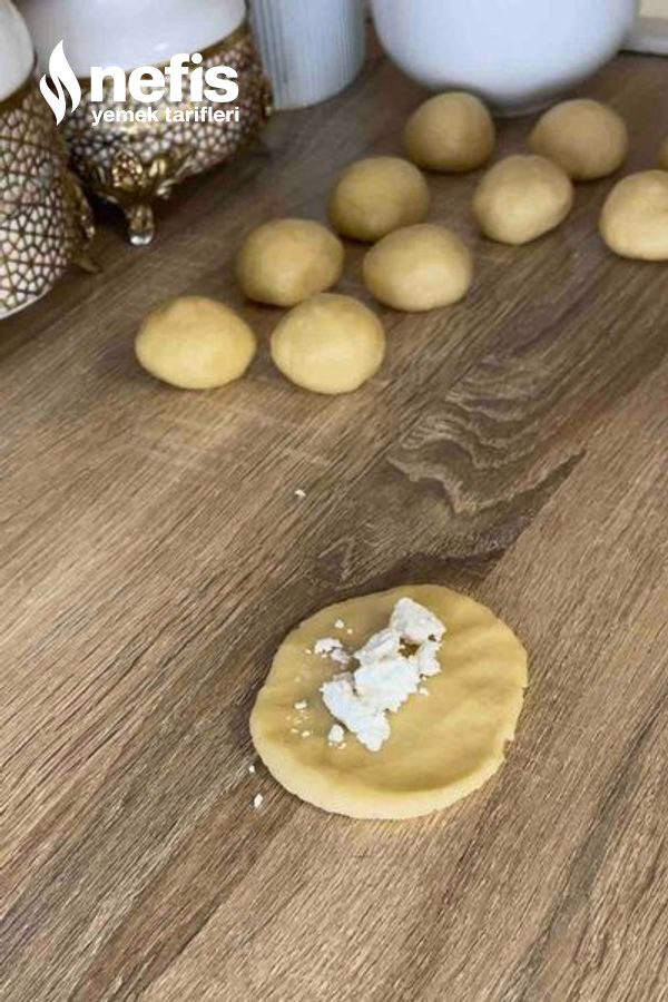 - Hamuru hafif parmak uçlarınızla oval bir formda açın içerisine peynir yerleştirin kapatın.